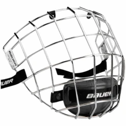 The Bauer Profile II Cage features a classic design with a flatter profile that players love. This redesigned mask fits on any helmet, enhances vision with oval wire, and the dual-density floating chin cup removes excess sweat and water with moisture channels.