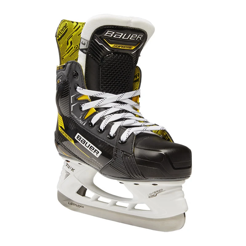 The Bauer Supreme M4 Skate provides incredible power performance at unprecedented value. Built for elite powerful skaters, this skate delivers enhanced features in the boot construction and tendon guard, bringing elite level technology to each stride. Its Digi Comp boot is fully thermoformable, giving you that game-ready feel with exceptional comfort, but also stiff and responsive in the lower portion for the ultimate energy transfer on each stride.