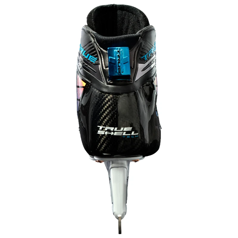 The TRUE TF9 Goal Skate is designed for goalies seeking the performance benefits and best-in-class fit that’s synonymous with TRUE skates. With its thermoformable carbon fiber one-piece shell, improved toe cap design, and adjustable asymmetrical tongue, the TF9 skate delivers superior fit and comfort in a lightweight build.